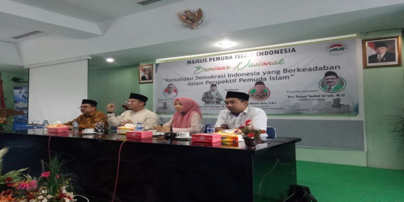 Acara Seminar nasional yang diadakan oleh Pemuda Islam Indonesia dengan narasumber, Waketum MUI Drs. Zainut Tauhid Sa'adi, Ketua Umum Pemuda Muhammadiyah Dhanil Anzar Simanjuntak, Wasekjen GP Ansor Mixil Mina Muni dan diikuti oleh beberapa organisasi pemuda keagamaan, dengan mengangkat tema 'Konsolidasi Demokrasi Indonesia yang Berkeadaban Dalam Perspektif Pemuda Islam'. (rls/frz)