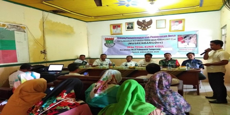 Visione.co.id - DesaTegal Kunir Kidul Kecamatan Mauk Tangerang mengadakan Musyawarah Rencana Pembangunan Desa (musrenbangdes) yang di pimpin langsung oleh kepala Desa Wawan Surayu yang turut dihadiri Kasie Ekonomi dan bangunan dari pihak kecamatan Bpk. Anton, kasie Pelayanan Bpk.Suparta, Babinsa, seluruh staf Desa, serta para undangan dari berbagai perwakilan pemuda, tokohmasyarakat, Pendidikan, dan agama.