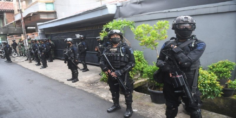 nampak sekumpulan polisi berjaga di sebuah rumah habib rizieq