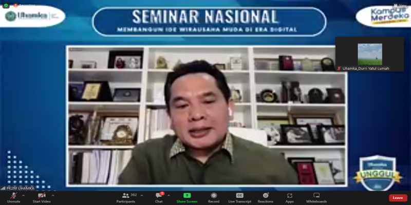 Pusat Kewirausahaan dan Karir Mahasiswa (PK2M) Universitas Muhammadiyah Prof DR HAMKA (Uhamka) menggelar Seminar Nasional dengan tema Membangun Ide Wirausaha Muda Di Era Digital. Seminar ini dilaksanakan melalui platform daring Zoom Meeting, Sabtu (2/7).