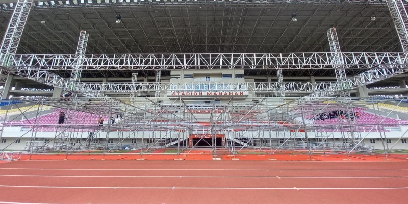 Di dalam stadion manahan rombongan melakukan pengecekan sarana dan prasarana di dalam stadion.