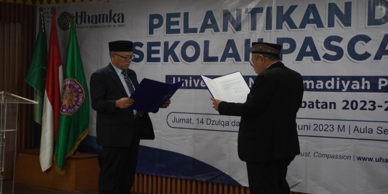 Rektor Universitas Muhammadiyah Prof DR HAMKA (Uhamka) selenggarakan Pelantikan Direktur Sekolah Pascasarjana Uhamka yang dilakukan secara luring di Aula SPs Uhamka, Jumat (2/6).