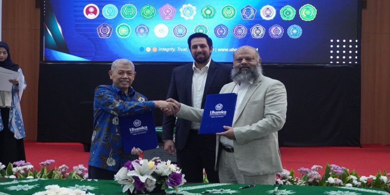 Universitas Muhammadiyah Prof. DR. HAMKA (Uhamka) menjadi tuan rumah dalam acara Memorandum of Understanding (MoU) Signing between Ibadat International University Islamabad 24 Muhammadiyah and Aisyiyah Higher Educations and Hybrid Visiting Professor yang dilaksanakan secara daring melalui live streaming YouTube dan luring di Aula A.R. Fachrudin lantai II, Gedung Fakultas Ekonomi dan Bisnis (FEB) Uhamka, Rabu (7/6).