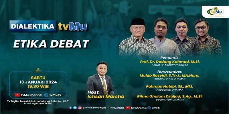 Stakeholder Universitas Muhammadiyah Prof. DR. HAMKA (Uhamka) menjadi narasumber dalam acara Dialektika TV Muhammadiyah (TVMU) dengan mengangkat tema Etika Debat yang ditayangkan di platform Youtube TVMU Channel dan WEBSITE TVMU, Sabtu (13/1).
