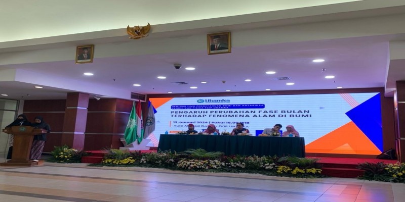 Mahasiswa Pendidikan Fisika Fakultas Keguruan dan Ilmu Pendidikan (FKIP) Universitas Muhammadiyah Prof. DR. HAMKA (Uhamka) menggelar seminar dengan tema Pengaruh Perbedaan Fase Bulan Terhadap Fenomena Alam di Bumi di Aula Ahmad Dahlan Gedung FKIP Uhamka,Sabtu (13/1).