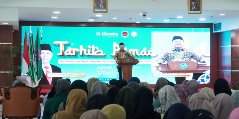 Universitas Muhammadiyah Prof. DR. HAMKA (Uhamka) mengadakan kegiatan Tarhib Ramadan dengan tema kegiatan Marhaban Ya Ramadhan: Mengukir Jejak Kebajikan, Menggapai Ridha Tuhan, Mencerahkan Semesta yang diselenggarakan di Aula Ahmad Dahlan, Lantai 6 Fakultas Keguruan dan Ilmu Pendidikan (FKIP) Uhamka, Jum'at. (8/3)