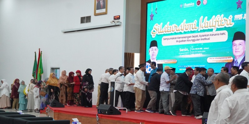 Universitas Muhammadiyah Prof. DR. HAMKA (Uhamka) mengadakan kegiatan Silaturahmi Idulfitri dengan mengangkat tema Sempurnakan Kemenangan Sejati, Syiarkan Karunia Ilahi, Wujudkan Keunggulan Institusi yang diselenggarakan di Aula A.R Fachruddin Fakultas Ekonomi dan Bisnis (FEB) Uhamka, Senin. (22/4)