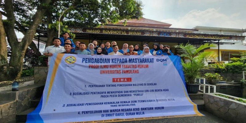 Berangkat dari permasalahan diatas, maka Dosen Fakultas Hukum Universitas Pamulang yang terdiri dari Dadan Herdiana, S.H., M.H. dan Dian Ekawati, S.H., M.H. dibantu oleh tiga orang mahasiswa menggelar penyuluhan hukum tentang pencegahan perilaku bullying di Sekolah adapun pelaksanaan penyuluhan dilaksanakan di SMA IT Darul Quran Mulia yang beralamat di Desa Pabuaran, Kec. Gunung. Sindur, Kabupaten Bogor, Propinsi Jawa Barat.