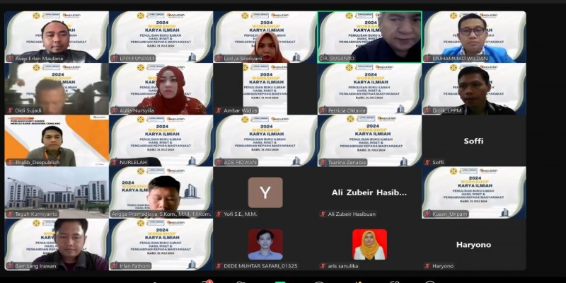 VISIONE - Lembaga Penelitian dan Pengabdian kepada Masyarakat (LPPM) Universitas Pamulang mengadakan kegiatan ilmiah yang bertajuk “Workshop Penulisan Buku Ilmiah Hasil Riset dan Pengabdian kepada Masyarakat (PkM)”. kegiatan dilaksanakan Pada hari Rabu, 31 Juli 2024 dan diselenggarakan secara daring melalui platform Zoom. Acara ini dihadiri oleh dosen, mahasiswa Universitas Pamulang, dan peserta umum. Acara ini bekerja sama dengan penerbit terkemuka Deepublish, yang berpusat di Yogyakarta,