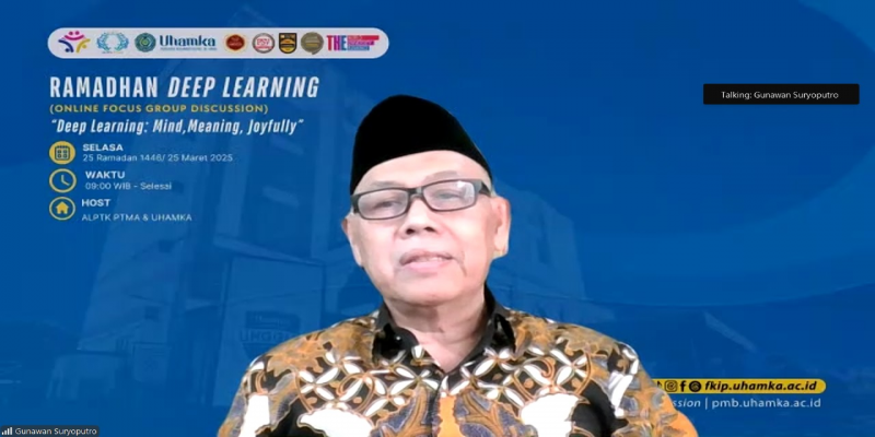 Asosiasi Lembaga Pendidikan Tenaga Kependidikan (ALPTK) Perguruan Tinggi Muhammadiyah ‘Aisyiyah (PTMA) bersama Universitas Muhammadiyah Prof. DR. HAMKA (Uhamka) menggelar Ramadan Deep Learning (Online Focus Group Discussion) dengan tajuk Deep Learning: Mind, Meaning, Joyfully melalui platform Zoom Meeting dan Youtube, Selasa (25/3).