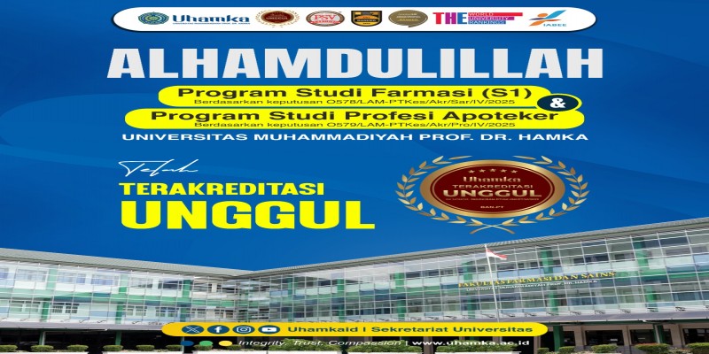 Program Studi S1 Farmasi dan Profesi Apoteker Fakultas Farmasi dan Sains (FFS) Universitas Muhammadiyah Prof. DR. HAMKA (Uhamka) telah meraih akreditasi Unggul LAM-PTKes, Minggu (4/5).