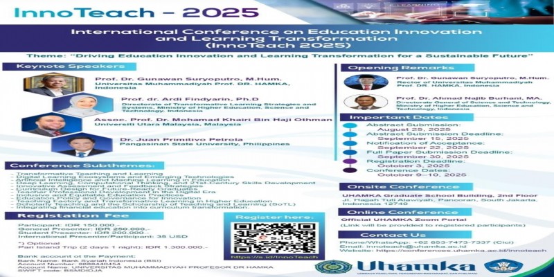 We are pleased to announce the International Conference on Education Innovation and Learning Transformation (InnoTeach 2025) with the theme:
