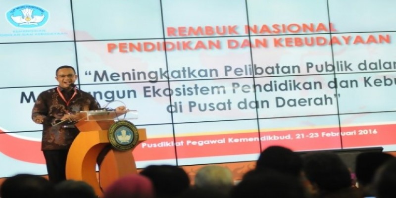 Depok, visione.co.id – Menteri Pendidikan dan Kebudayaan (Mendikbud) Anies Baswedan mengajak para pemangku kepentingan di jajaran pendidikan dan kebudayaan untuk meningkatkan pelibatan publik pada level kolaborasi dan tak hanya pada LSM. Demikian disampaikan Anies saat penutupan Rembuk Nasional Pendidikan dan Kebudayaan, di Sawangan, Rabu (23/2/2016).