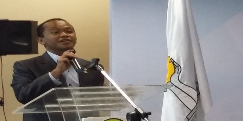 Ketua Umum BPP HIMPI, Bahlil Lahadalia saat memberikan sambutan dalam Forum Dialog HIPMI dengan tema "Repatriasi Nasional Versus Keadilan Publik" di HIPMI Center, Menara Bidakara II Lantai 8, Jalan Jenderal Gatot Subroto, Pancoran, Jakarta (Rabu, 13/4).